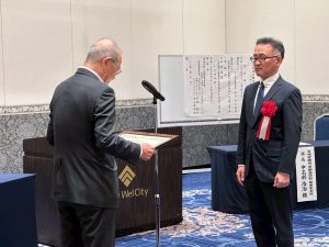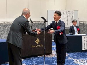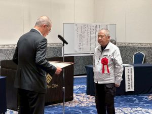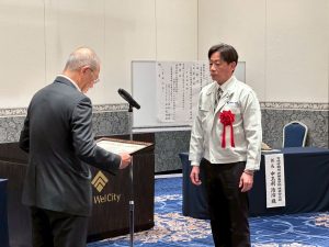 安全表彰では、安全に対する取り組みが顕著だった株式会社矢野興業と株式会社下森建装の2社、個人賞を受賞した▽長友和人氏(上田工業株式会社)▽竹本直哉氏(株式会社坂下組)▽弓削誠一郎氏(株式会社志多組)▽小西信照氏(神崎建設工業株式会社)▽上坂祐蔵氏(株式会社桜木組)ーの5人に表彰状と記念品を贈りました。